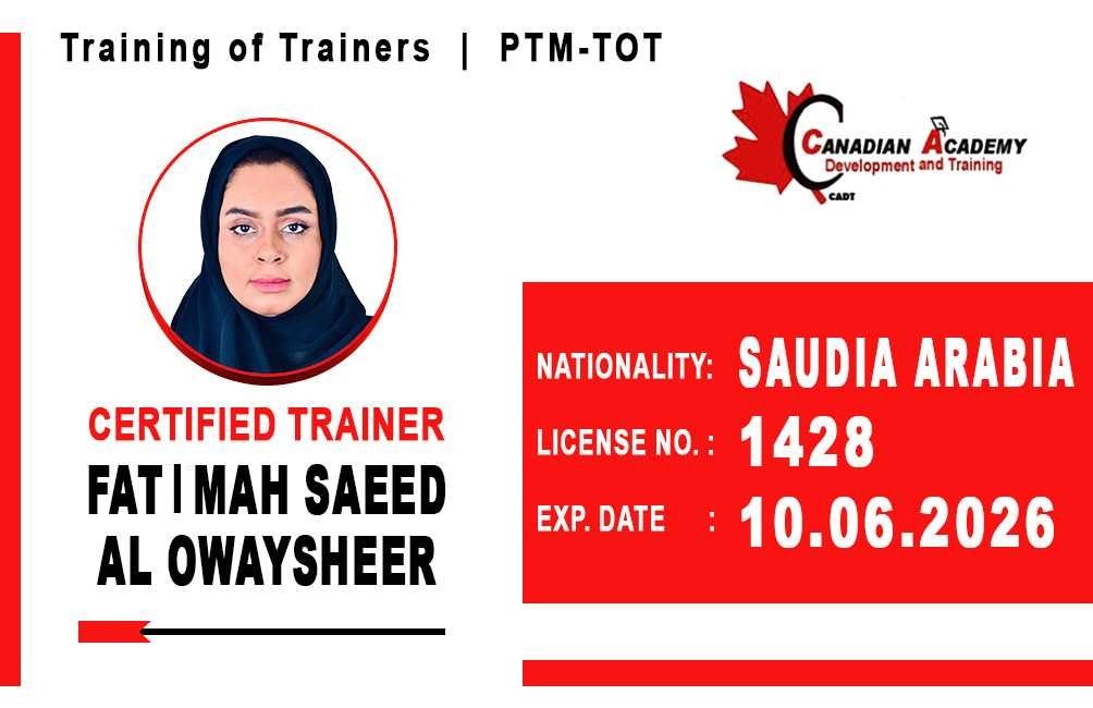 We are CADT Canadian Academy for Development & Training lic : 73071 law. 159-82 cont942/ gathering professional high quality Trainers and training centers worldwide, who have agreed to abide by the standards of quality, professionalism and ethics in their training.